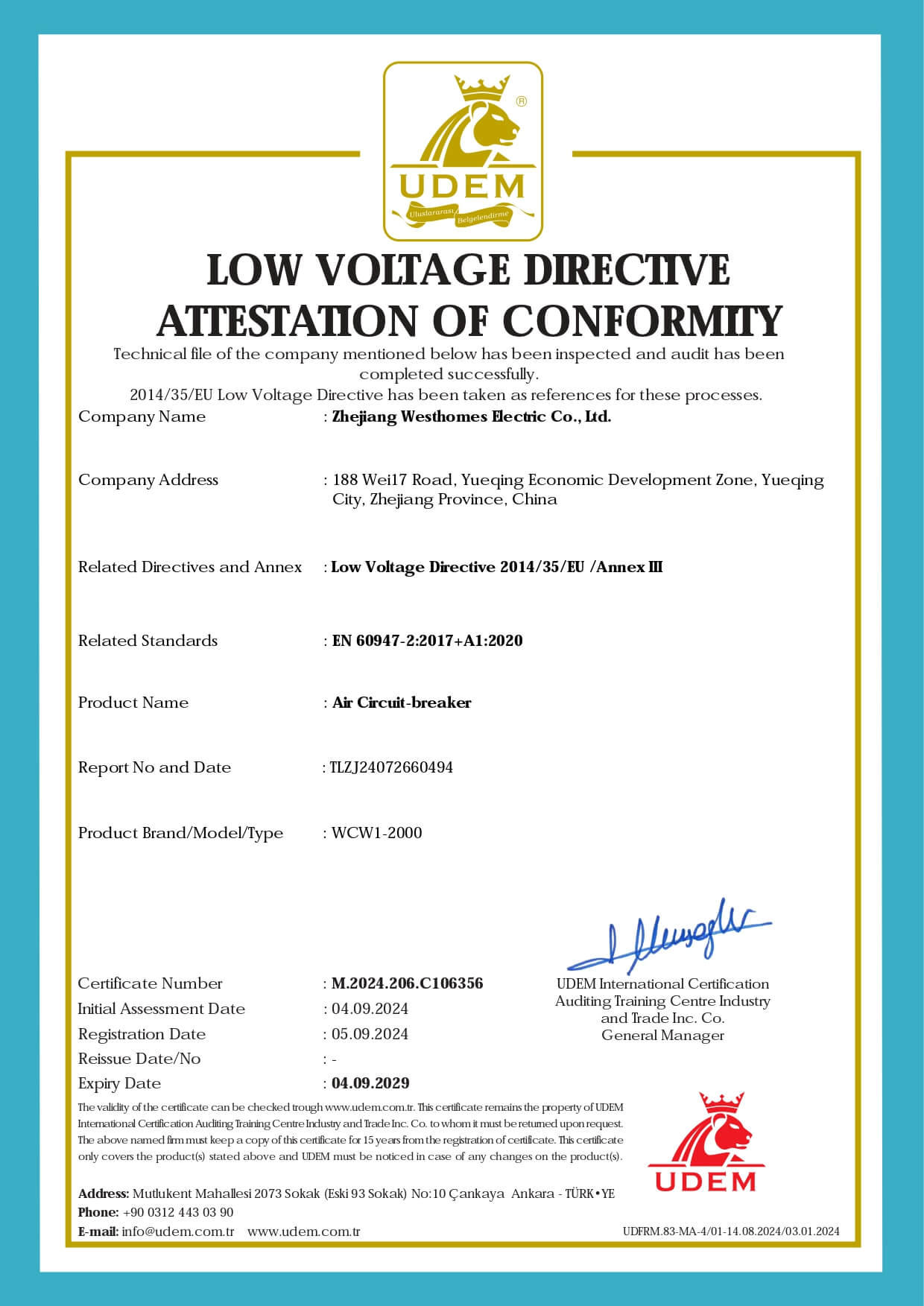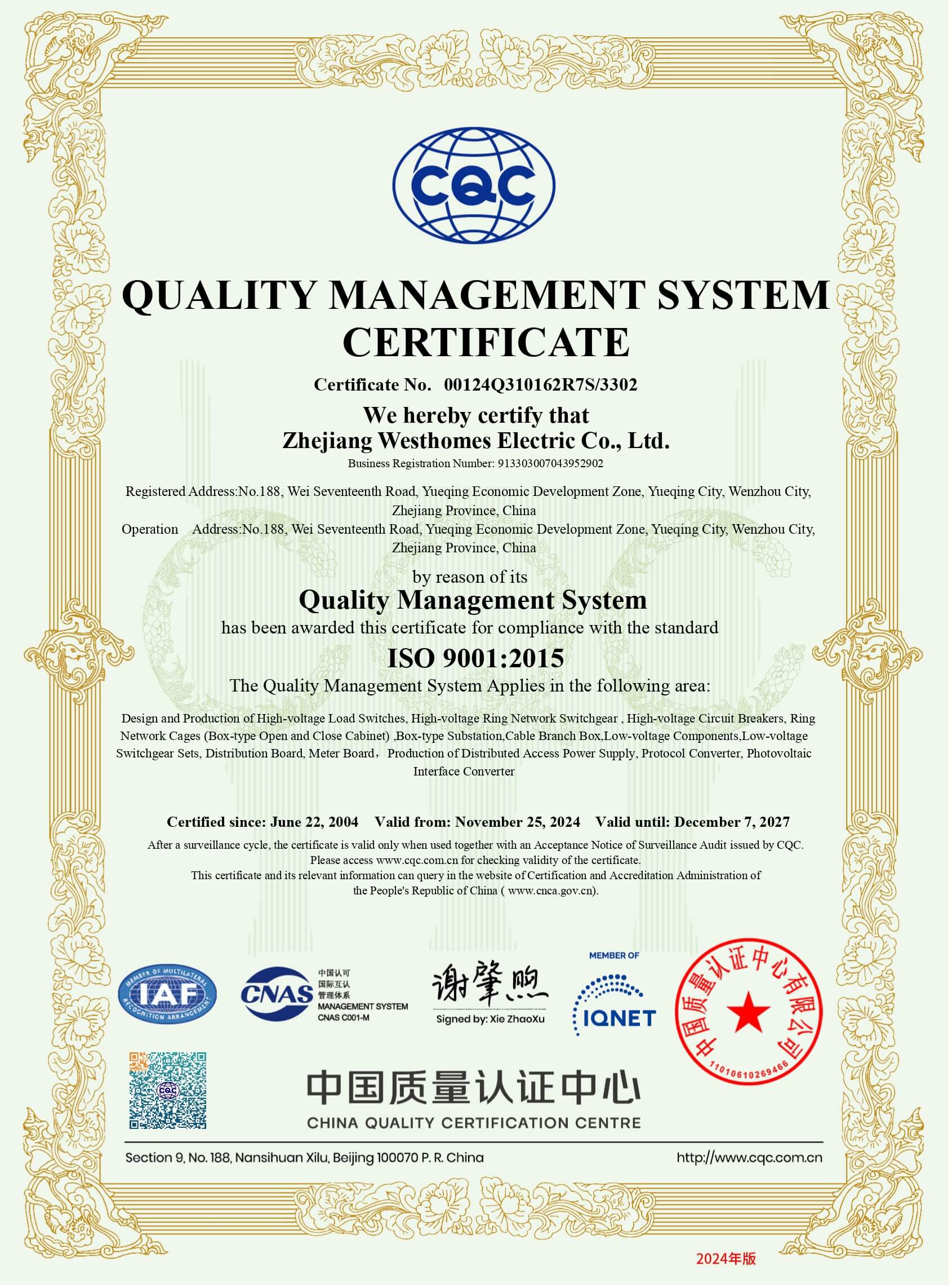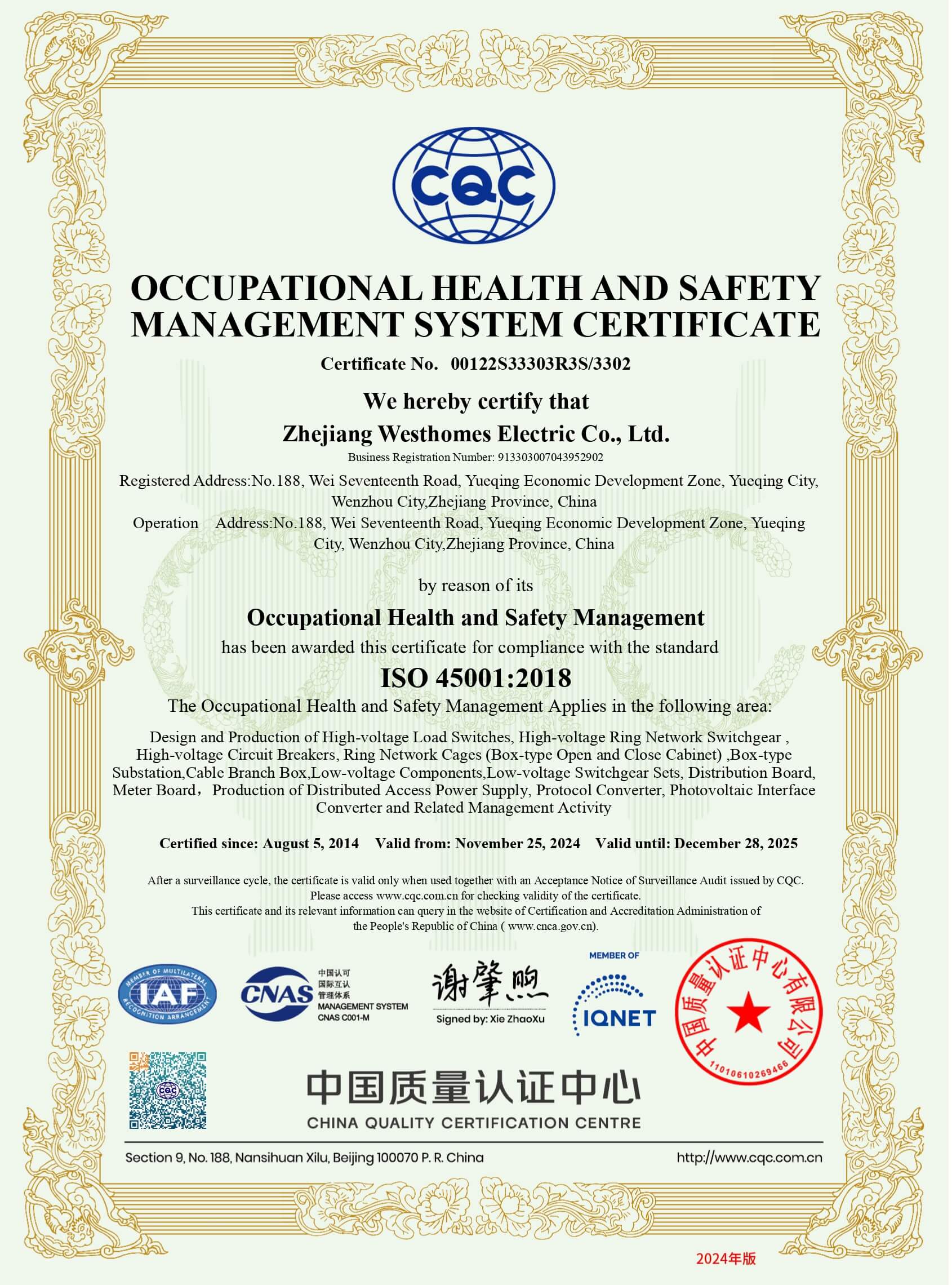 Westhomes Electric boasts a comprehensive range of certifications, including CCC, CE, and CB, ensuring compliance with international standards for quality and safety. The company is also certified under ISO9001 for quality management, ISO14001 for environmental management, and ISO45001 for occupational health and safety. As a trusted supplier of circuit breakers to the State Grid Corporation of China, Westhomes Electric demonstrates its commitment to delivering reliable, high-performance products that meet the stringent requirements of both domestic and global markets. These certifications underscore the company’s dedication to excellence, sustainability, and customer satisfaction.