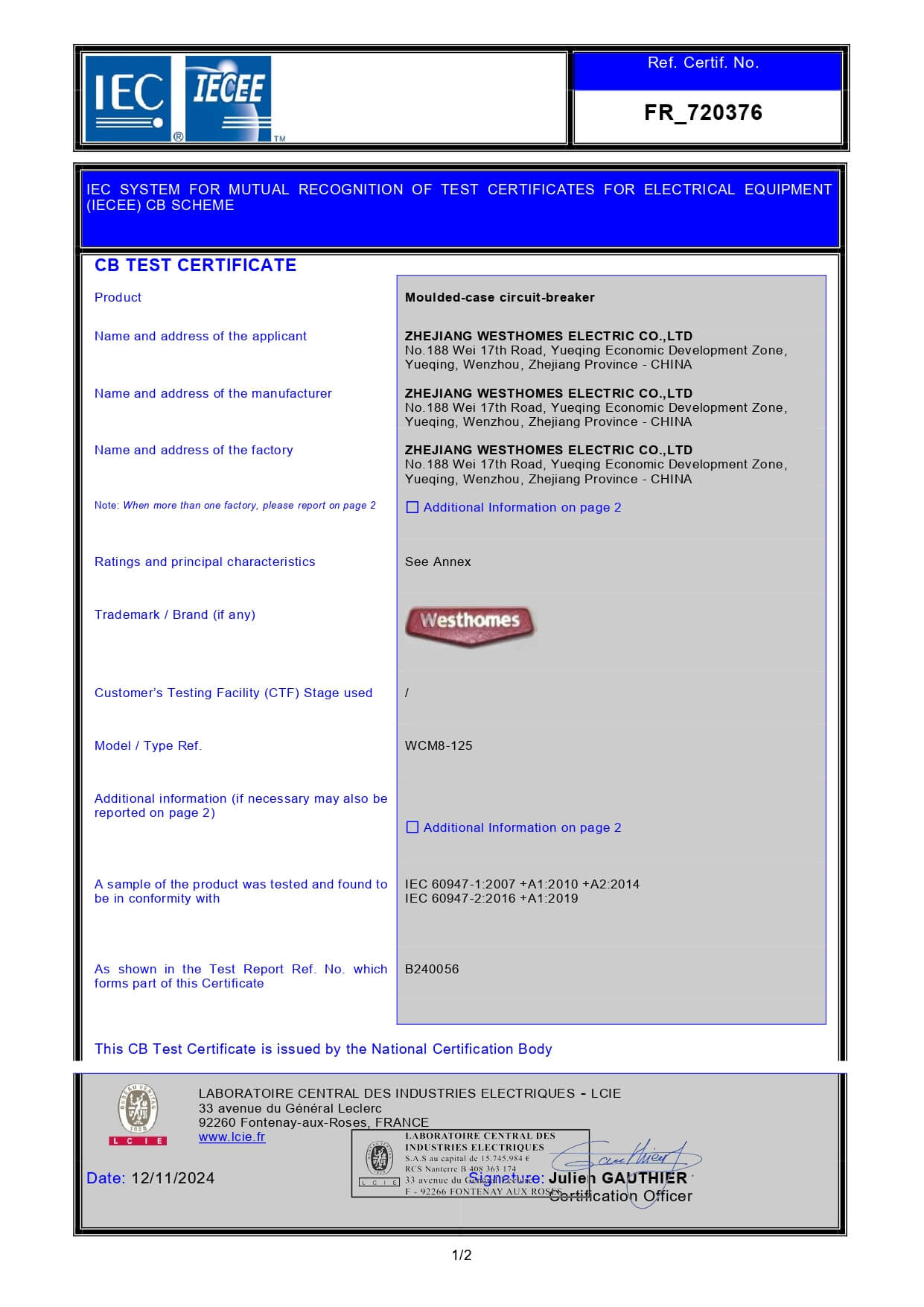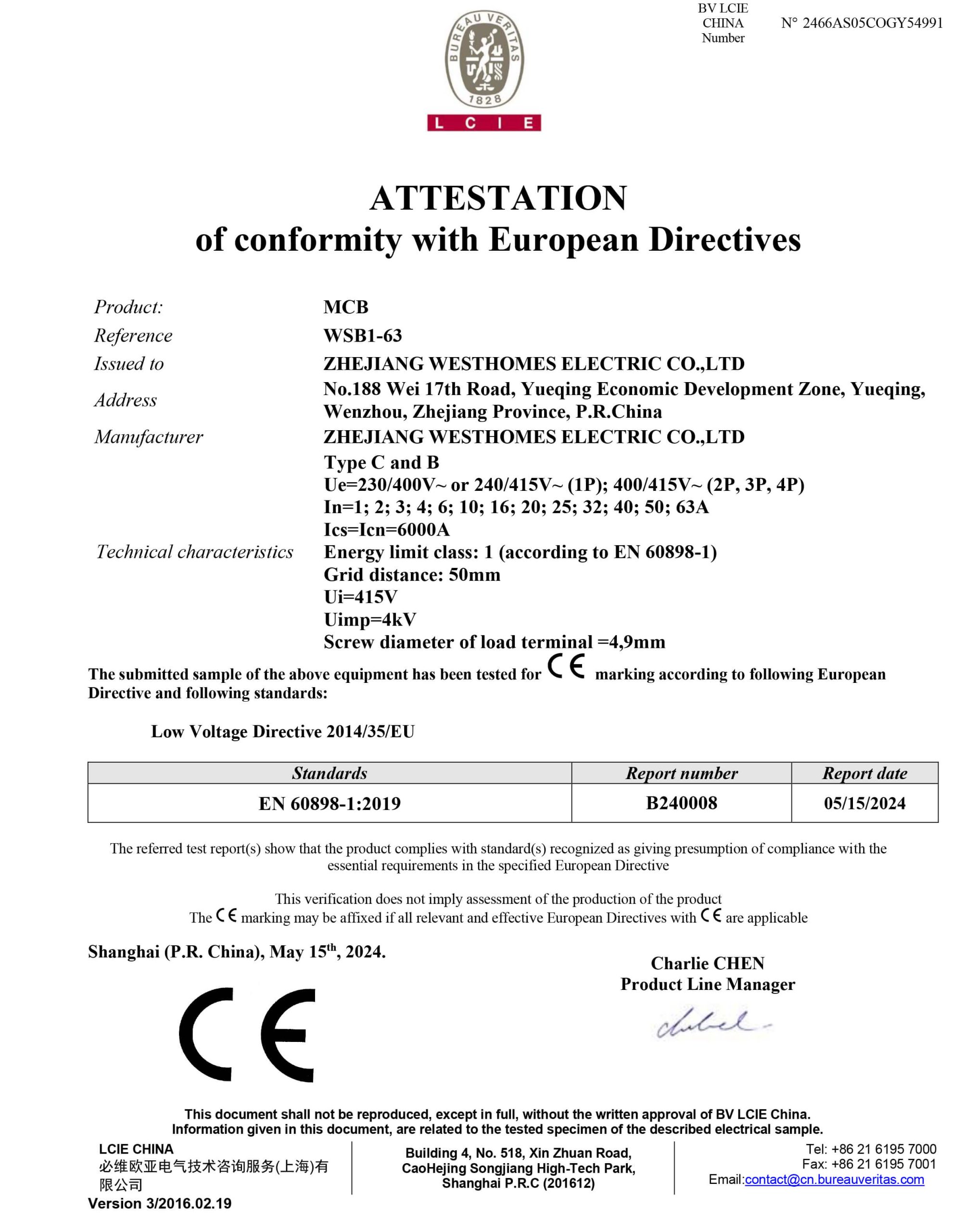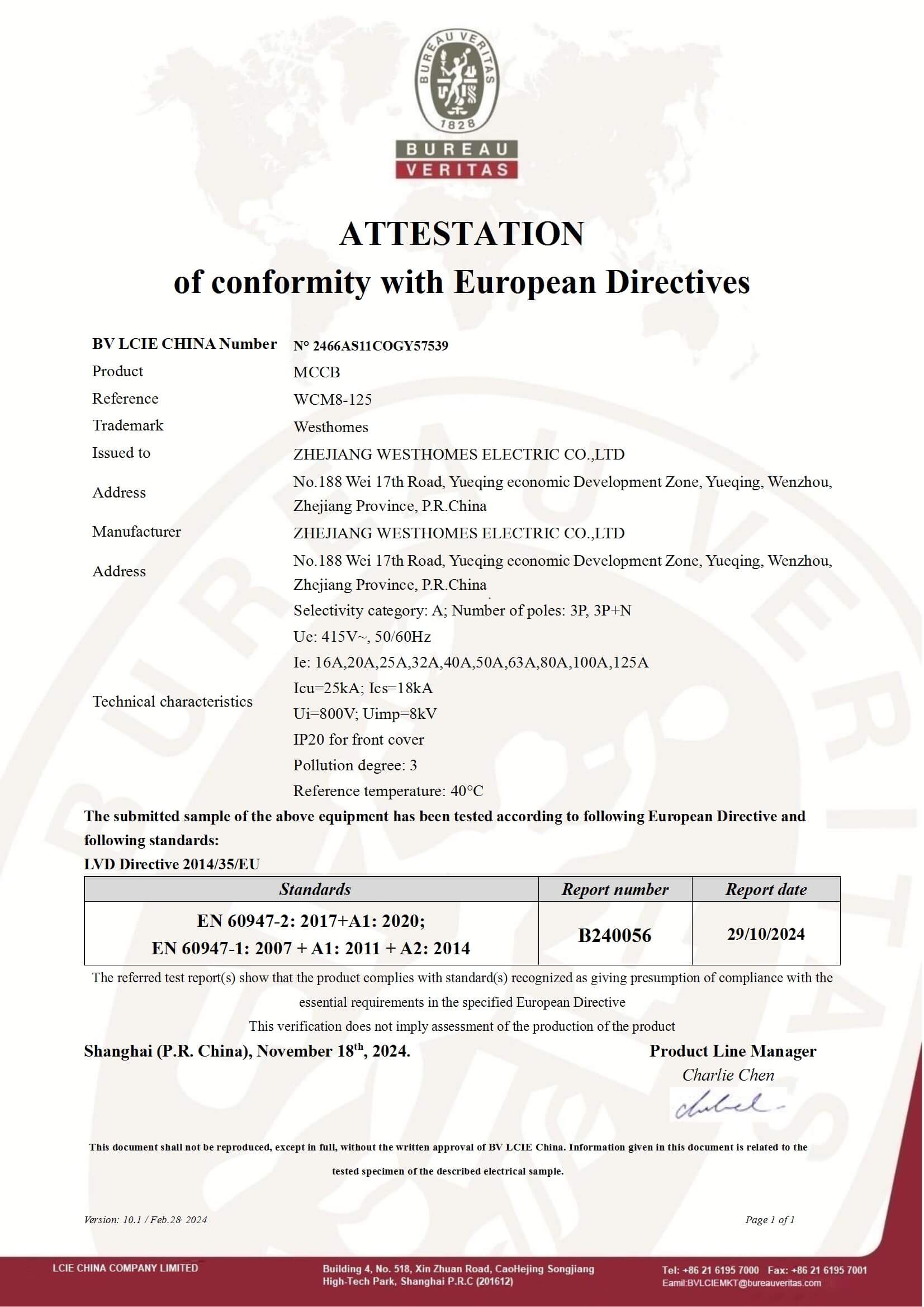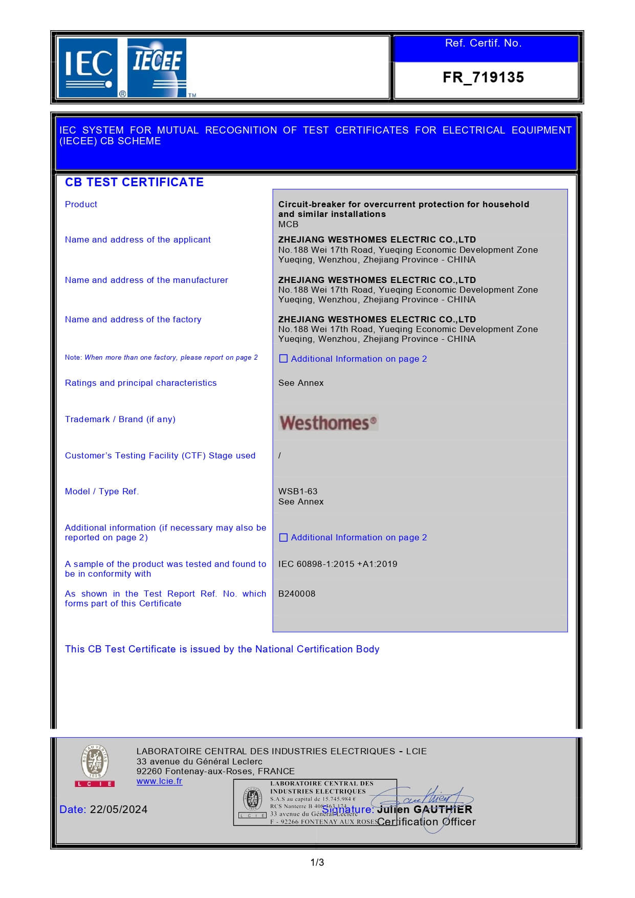 Westhomes Electric boasts a comprehensive range of certifications, including CCC, CE, and CB, ensuring compliance with international standards for quality and safety. The company is also certified under ISO9001 for quality management, ISO14001 for environmental management, and ISO45001 for occupational health and safety. As a trusted supplier of circuit breakers to the State Grid Corporation of China, Westhomes Electric demonstrates its commitment to delivering reliable, high-performance products that meet the stringent requirements of both domestic and global markets. These certifications underscore the company’s dedication to excellence, sustainability, and customer satisfaction.