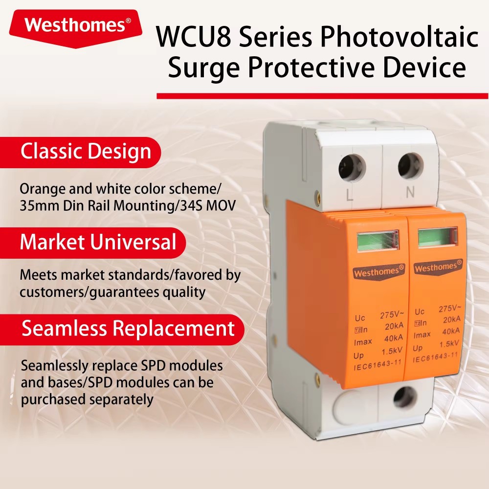 Guard your industrial/solar gear with Westhomes WCU8-40! 40kA high-current protection, 4P configuration, and compact DIN rail installation for versatile AC DC applications.
