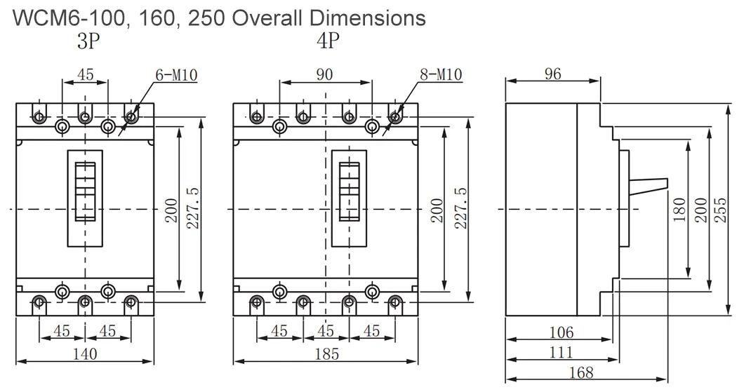 WCM6 sereis moulded case circuit breaker (MCCB for short) is the new type of product with top current limiting principal and manufacture technology in design, is tight in structure, total molularized, high breaking capacity, zero flashover. It applies at AC50Hz, rated operation voltage 690V and below, rated operation current upto 1250A for infrequent switch of line and infrequent start of motor. MCCB has overload, short circuit and under voltage protection device, to protect line and power evice from demage.