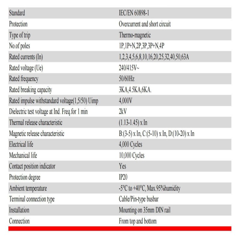 Rated breaking capacity 3KA,4.5KA,6KA.